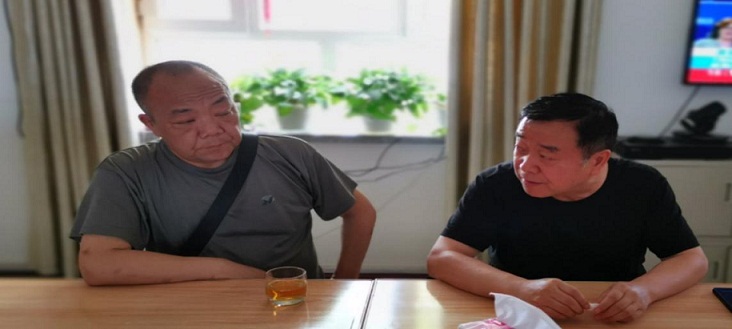 新疆注册税务师行业党委副书记、秘书长、同心服务团副团长谢光礼与斯也克驻村工作队第一书记李勃亲切交谈