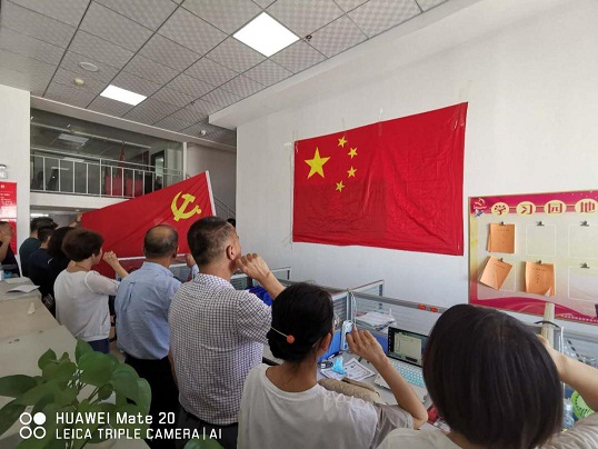 各党支部及党员、全体员工在党支部书记赵成斌的带领下,在国旗和党旗面前重温入党誓词。全体党员佩戴党徽,右拳紧握,庄严宣誓,重温入党时的思想激情和奋斗追求,回顾入党宣誓时的庄严承诺和坚定决心,唤醒先进意识、增强党性意识、坚定入党信念和为共产主义奋斗终生的决心。铿锵有力的誓言激励着全体人员破除旧我、创造新我,将誓词融入生命,终身践行。在红色旗帜下,我们仿佛看见革命先辈英勇无畏的画面,感受共产党人面对艰难险阻,坚持初心不改变、信仰不动摇,打响第一枪开创新局面的大无畏革命精神。这是一次深刻的党性教育洗礼,让大家深刻领会了“听党指挥、敢为人先、百折不挠、为民奋斗”的精神内涵。