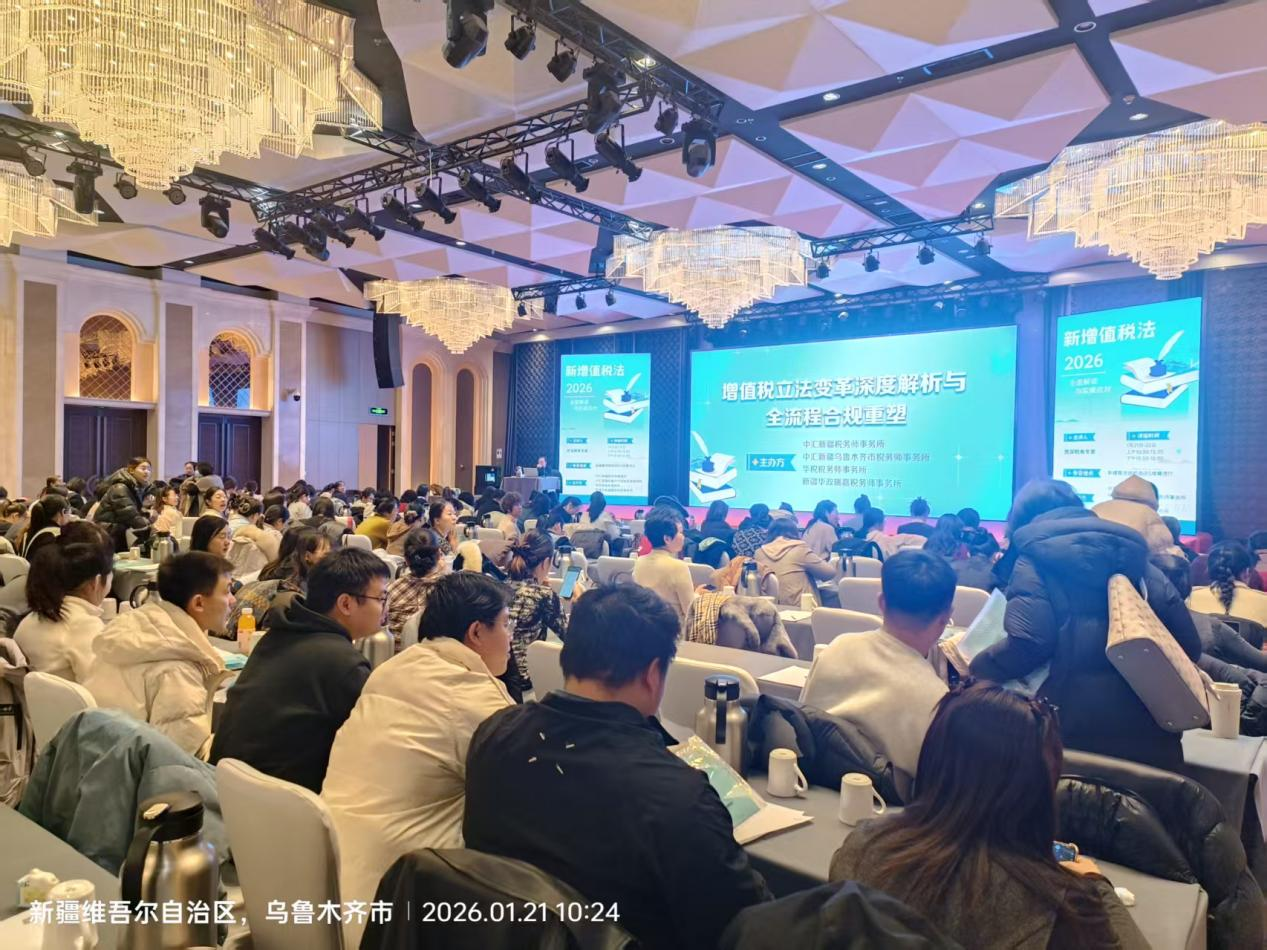 为助力新疆地区企业精准把握2026年《新增值税法》实施要点,提升全流程税务合规管理能力,2026年1月21日,中汇新疆税务师事务所有限公司、中汇新疆乌鲁木齐市税务师事务所有限公司、新疆华政瑞嘉税务师事务所有限公司、华税税务师事务所(乌鲁木齐)有限公司在乌鲁木齐联合举办“增值税立法变革深度解析与全流程合规重塑”专题培训班,全疆各行业财务总监、税务经理及核心业务骨干400余人参加培训。